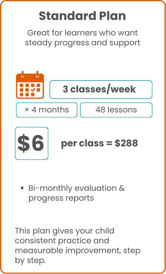 After every class, our teachers record your child’s progress and share feedback. If necessary, we provide supplemental homework or practice activities to strengthen specific skills.