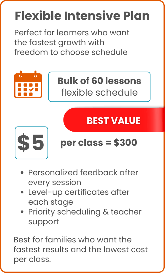 Each class lasts 25 minutes, ideal for maintaining focus and engagement, especially for young learners.